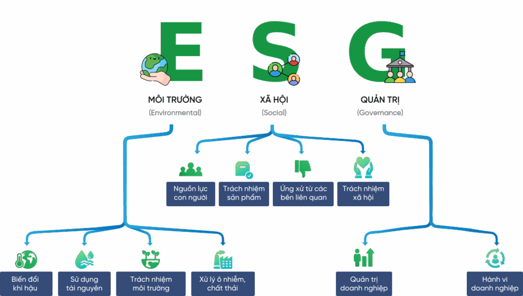ESG là 1 bộ tiêu chuẩn về môi trường, xã hội và quản trị ESG (Environmental, Social and Governance); ESG đang trở thành xu hướng của các doanh nghiệp hoạt động giao thương quốc tế, hội nhập toàn cầu trong nền kinh tế hiện đại.